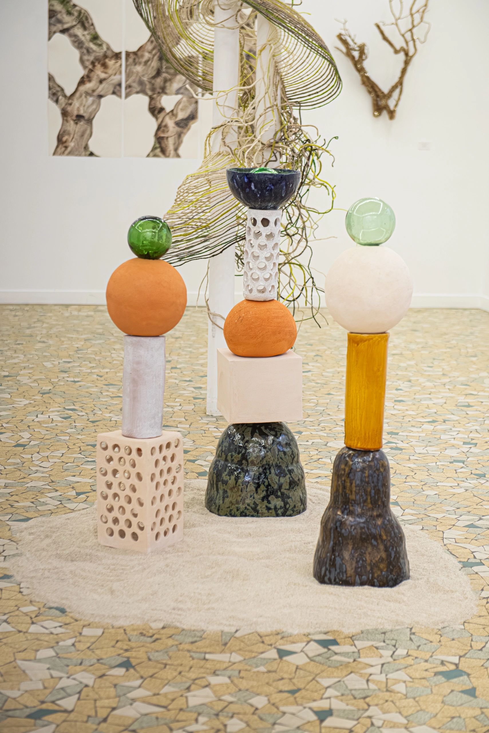 Rachel Altabas débute avec le dessin et la peinture avant d’étudier les Arts Appliqués à Toulouse puis à l’École Duperré. Spécialisée en design textile et coloration, elle collabore avec Christian Dior Couture avant de fonder son studio en 2015. Aujourd’hui, la céramique et les totems sont au cœur de sa pratique. Inspirée par Ettore Sottsass, elle explore les frontières entre nature et artifice. Ses œuvres mêlent émail brillant et faïence brute dans une approche sensorielle et sculpturale.